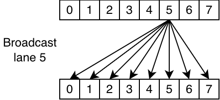- broadcast31: broadcast the last lane of the first half to the entire second half