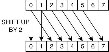 __shfl_up(data, 2, 8): read from the lane that's two indexes below